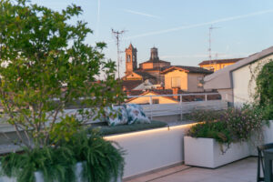 Grazie a questa progettazione dell’attico, la terrazza panoramica può essere vissuta in ogni momento della giornata. Si trasforma così in una naturale prosecuzione della casa: uno spazio armonico, funzionale e ricco di charme, pensato per chi desidera vivere il centro storico dall’alto con stile.