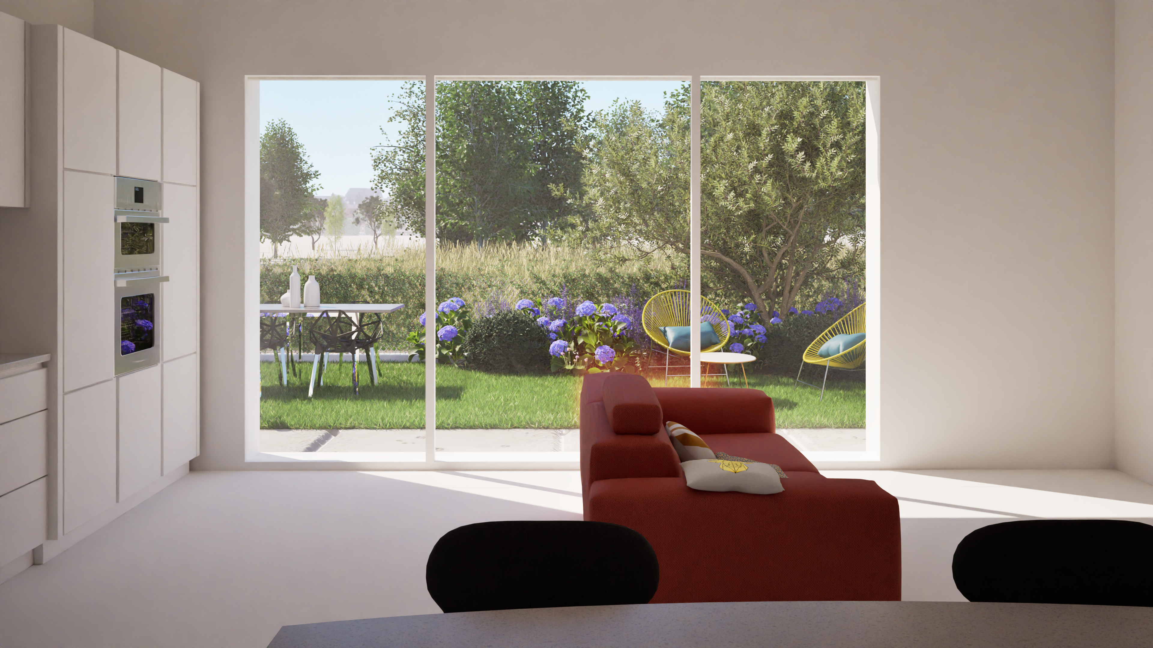 Un elemento fondamentale di questo progetto è la grande vetrata che affaccia direttamente sul giardino: una vera e propria cornice che, cambiando aspetto al variare delle stagioni. Questo giardino, progettato su misura, non è solo un abbellimento esterno, ma un elemento che arricchisce la vita quotidiana. Diventa un luogo dove la natura entra in casa, stimolando la fantasia e i sogni di chi lo vive. Che siano adulti o bambini, tutti trovano nella bellezza del giardino uno spazio che ispira tranquillità e serenità, trasformando il giardino in un piccolo angolo di paradiso a Faenza.