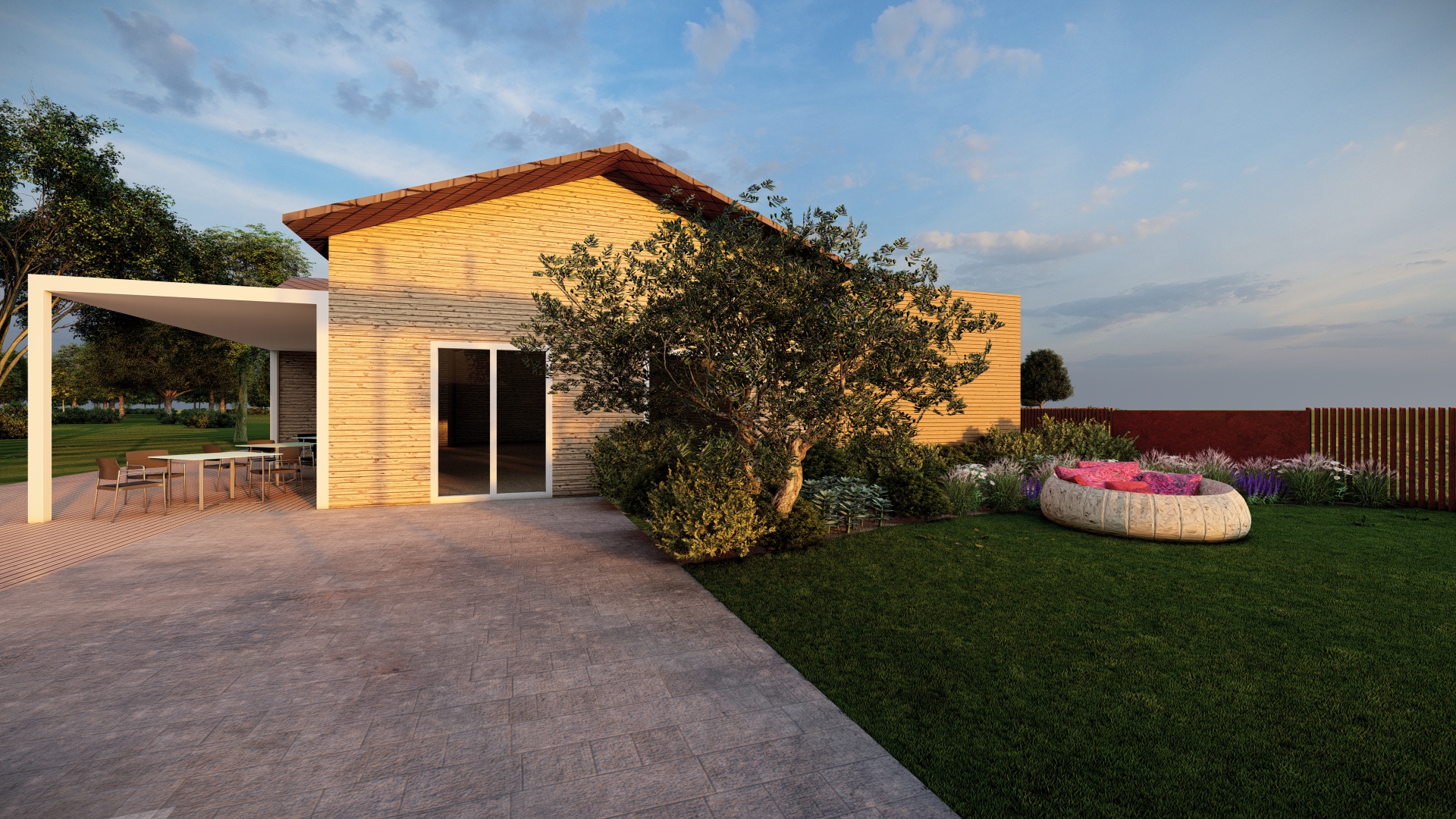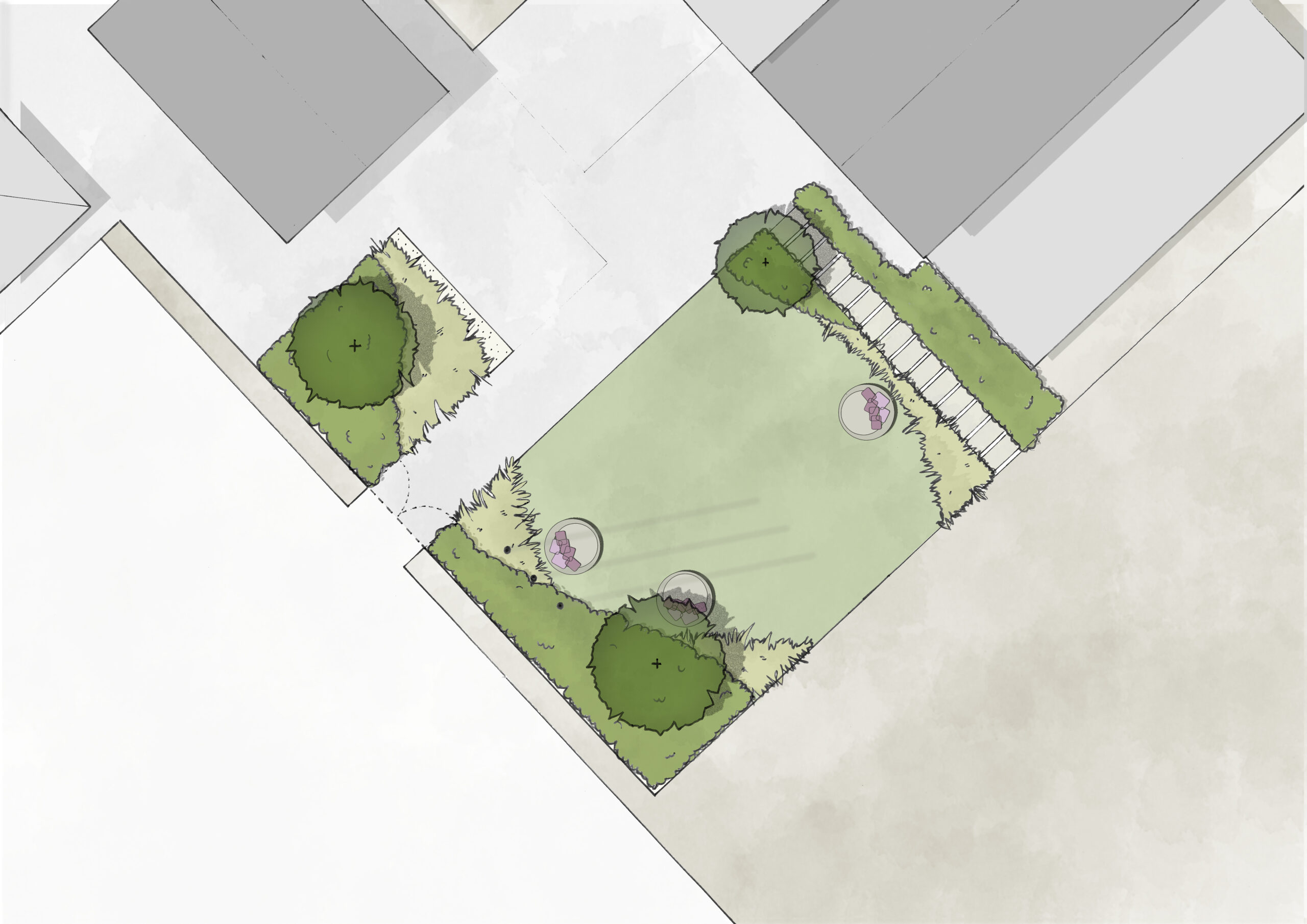 La scelta della vegetazione è stata fatta con grande cura, per rispecchiare il contesto naturale circostante. Il progetto include l’uso di specie mediterranee e piante a bassa manutenzione, ideali per garantire un giardino che resti bello e curato nel tempo. Le piante perenni e i cespugli sempreverdi sono stati scelti per creare un paesaggio dinamico che cambia durante tutte le stagioni, offrendo un giardino sempre vibrante e accogliente.