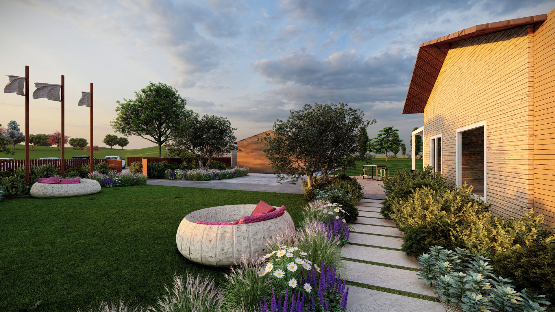 Ogni dettaglio è realizzato per valorizzare l’ambiente e per offrire un’anticipazione dell’esperienza che il club ha da offrire. L’uso di piante e materiali naturali contribuisce a creare un giardino che si integri perfettamente con l’ambiente circostante, offrendo una sensazione di tranquillità e armonia.