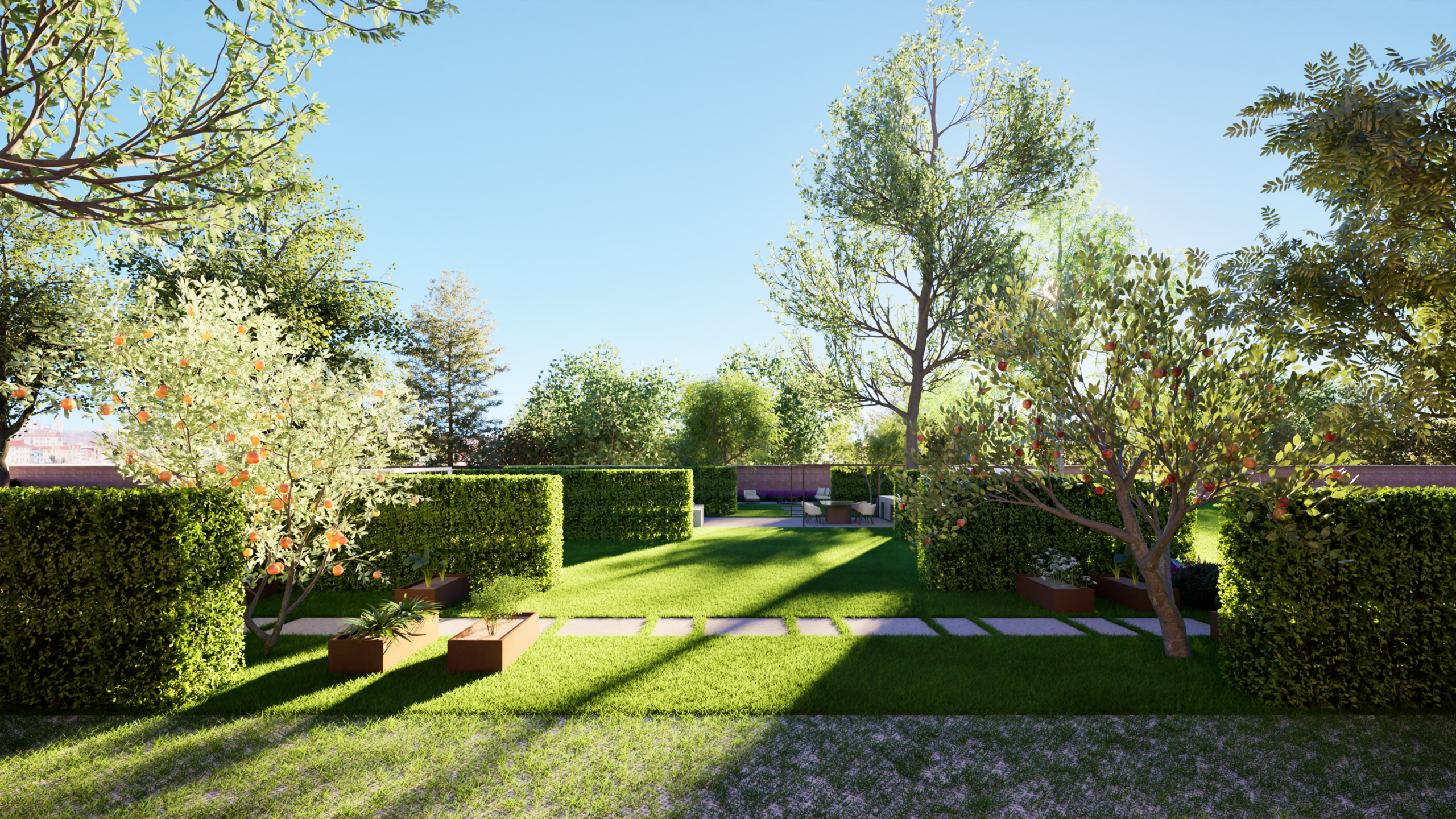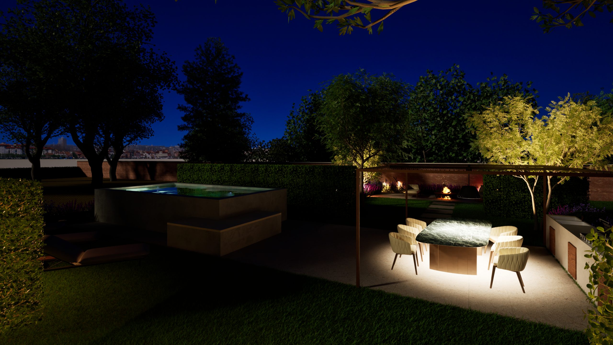 Il progetto prevede la creazione di diverse zone riservate, dedicate a usi differenti: uno spazio con braciere e area lounge per i momenti di relax, una cucina outdoor con zona pranzo, l’area piscina e un campo da calcetto. Ogni ambiente è pensato come un luogo da vivere, in equilibrio tra convivialità e intimità.