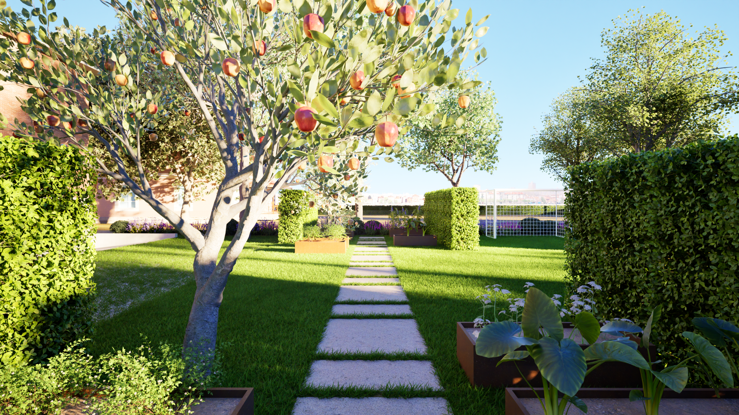 L’area orto, realizzata in cassoni rialzati, è pensata per facilitare la gestione e la coltivazione delle piante orticole, garantendo allo stesso tempo ordine, funzionalità ed equilibrio estetico all’interno del giardino.